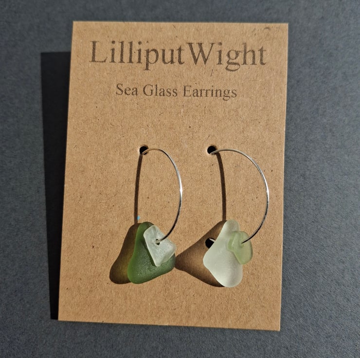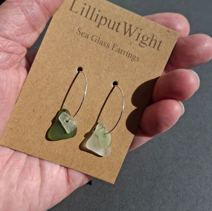The silver hoops are 1" in diameter and each has two pieces of sea glass threaded onto it