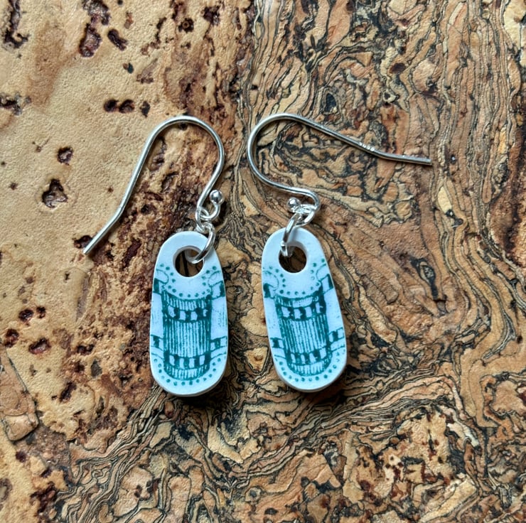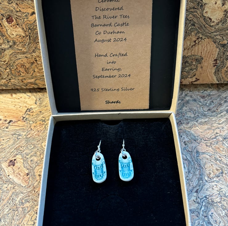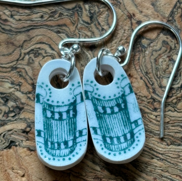 The idea is to create something new from old, the finished piece isn't meant to be perfect or highly polished. Instead, retain marks, stains and scratches, part of the original shard and it’s journey. Earrings are similar in shape but not exact.