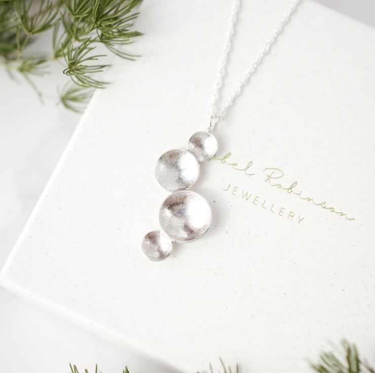 Our jewellery is lovingly packaged to create that special unboxing experience whilst being mindful of our impact on the environment. The necklace comes presented in its own gift box tied with ribbon, all enclosed in tissue with sprigs of dried lavender from Isobel's garden. We use eco-friendly paper tape for all our parcels too!