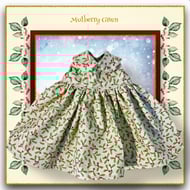 A pretty forest friends print dress to fit baby Daisy. The dress is handmade from best quality cotton, has a lined bodice and fastens at the back with a little popper