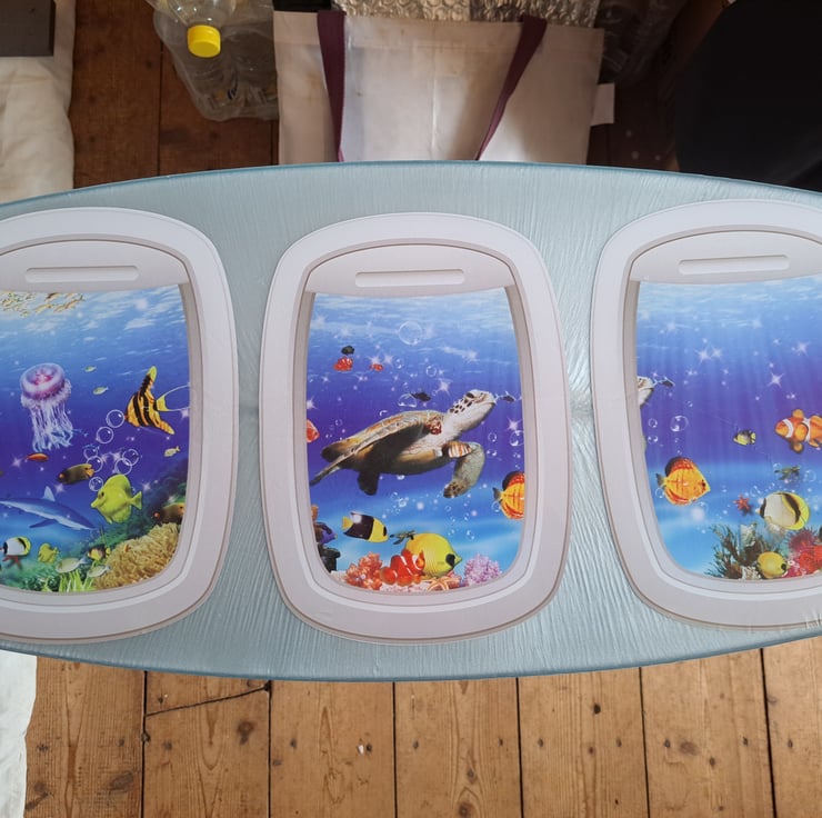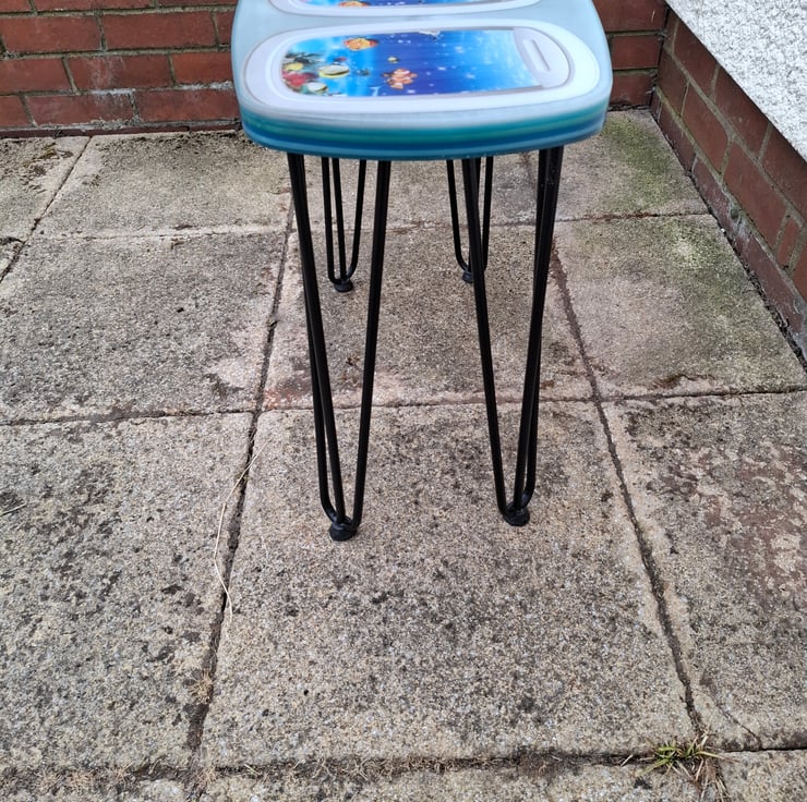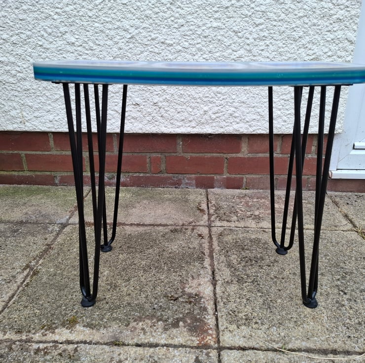 Handmade one of a kind Resin table with Ocean Themed motif and Hairpin legs. 60cm long, 30cm wide and 4cm tall. Weighs approximately 6.4kg
