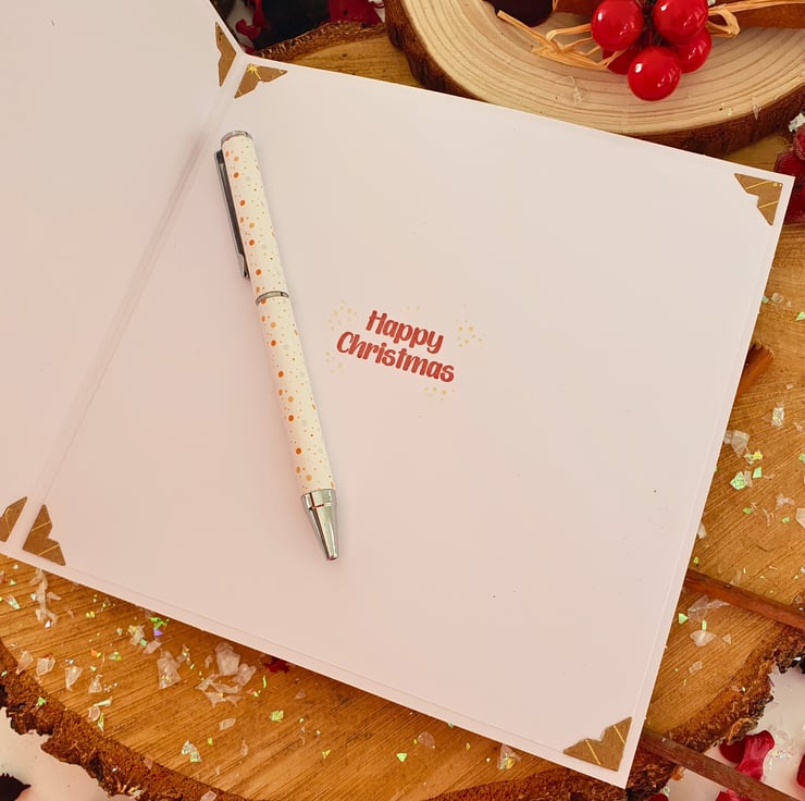 The card measures approx. 7" square & comes with an envelope to match its size. It is kept in a clear cellophane bag for protection. A small sticker with my shop details has been added at the back of the card.