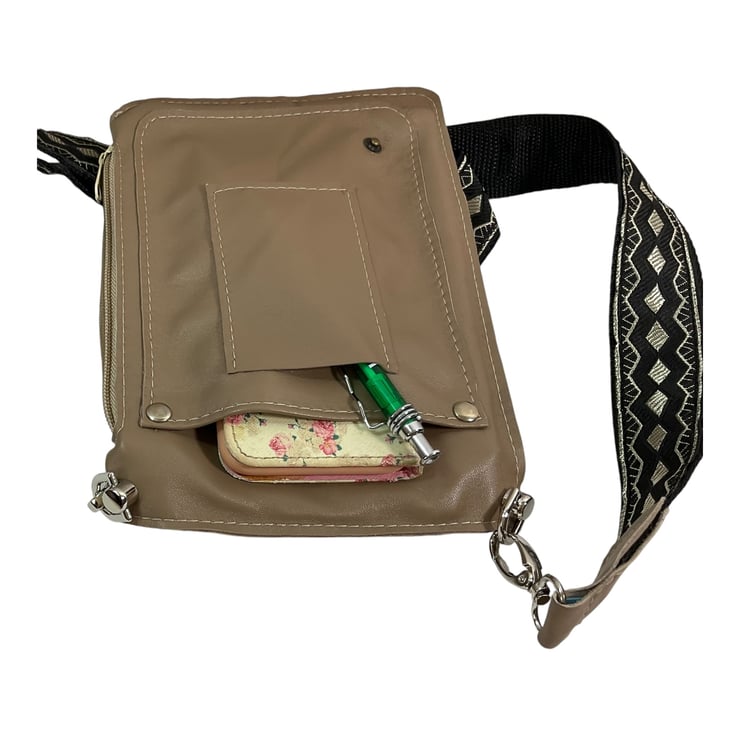 Unique flat crossbody bag, just big enough for phone, small purse, keys and a few bits.