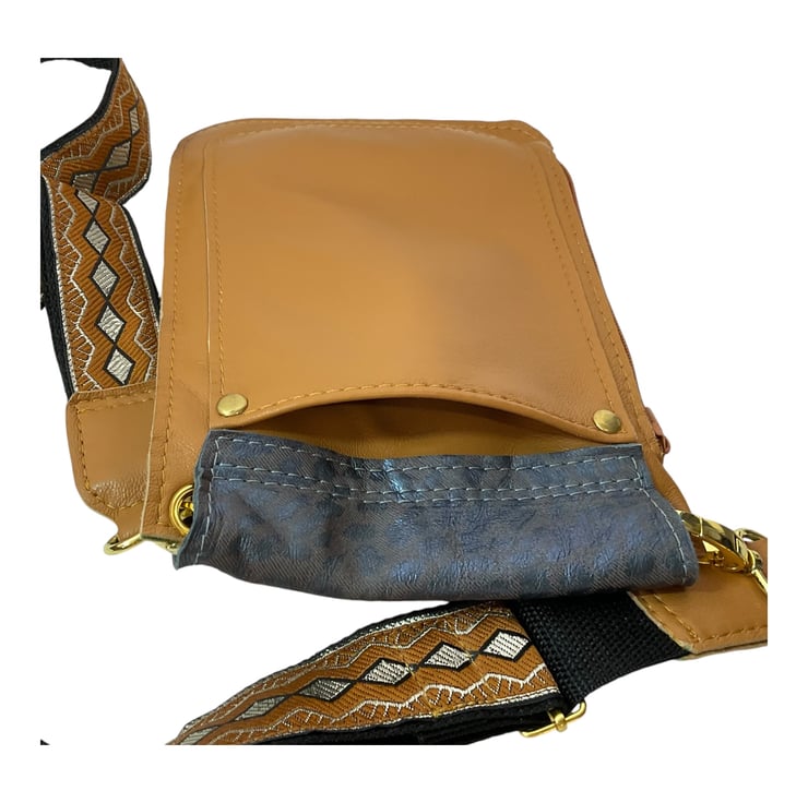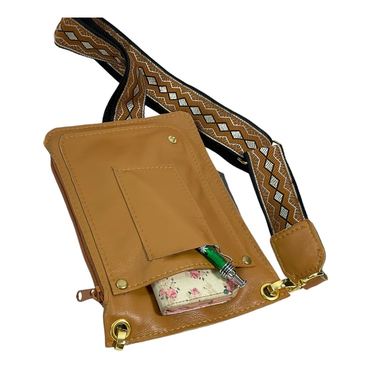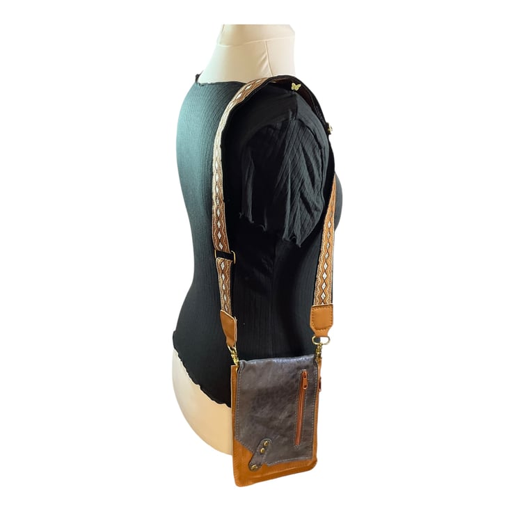 Unique flat crossbody bag, just big enough for phone, small purse, keys and a few bits.