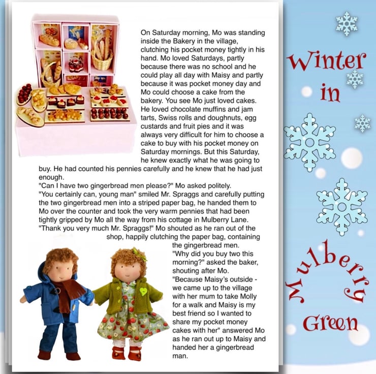 There are other children in Maisy’s class at school - Violet, Billy with his pet rabbit, Amber, Tilly, Rosie and her kittens, Amelia, Ruby, Marigold, Bobby with Max the dog, and the twins Oliver and Olivia, who have a puppy called Oscar. The dolls are all 26cm tall and baby Daisy is 16cm. Maisy and Mo love nothing more than having adventures with their friends. You can read about their adventures on my Facebook and Instagram pages - Maisy Muffin Rag Dolls and on my Mulberry Green Pinterest boards.