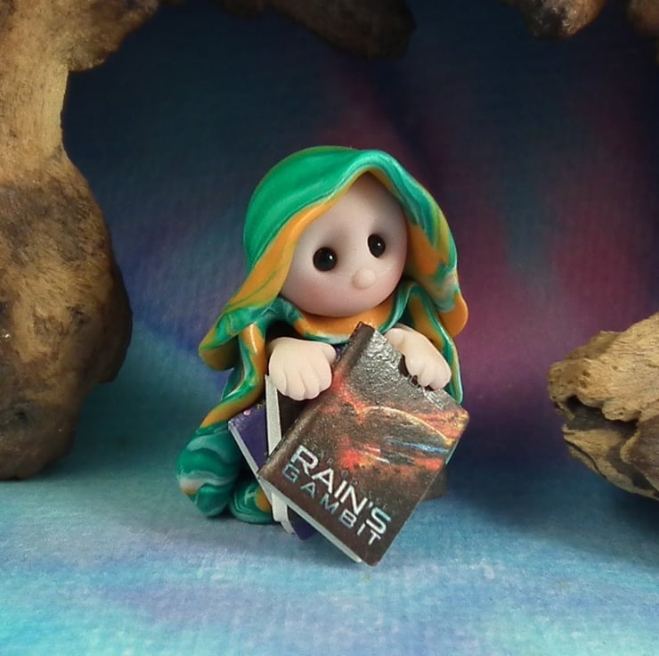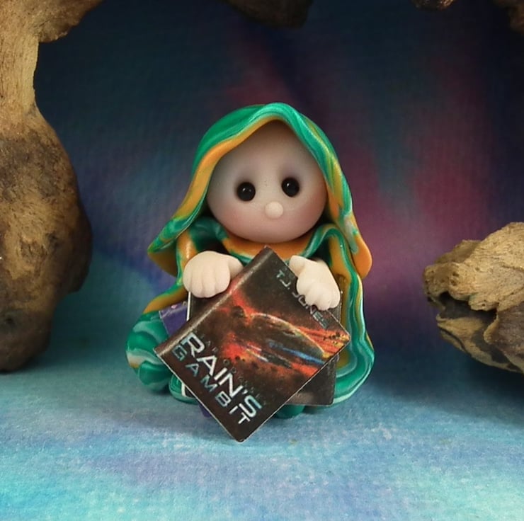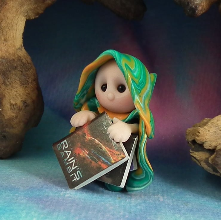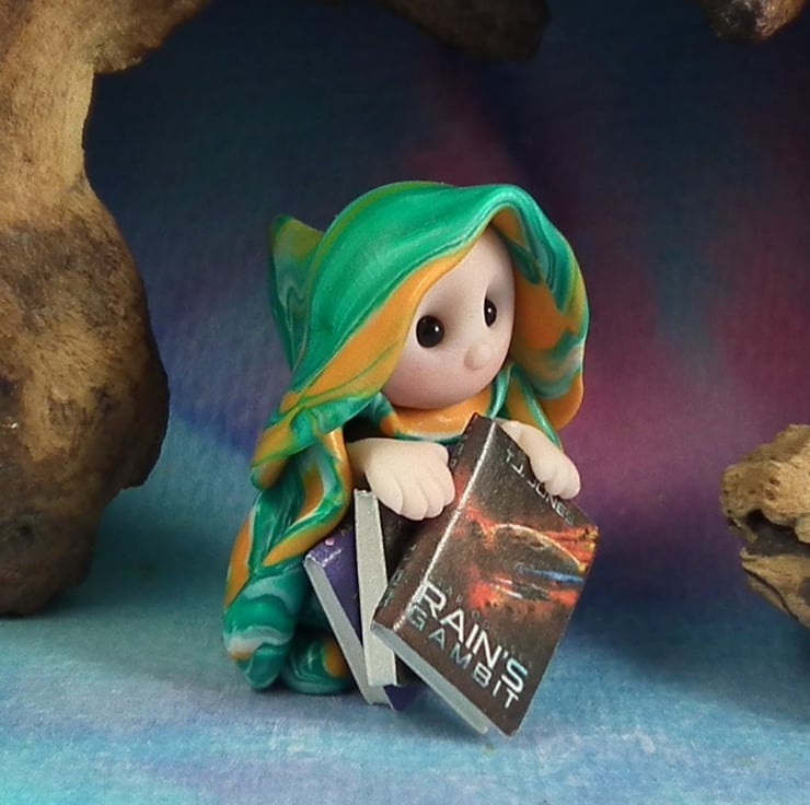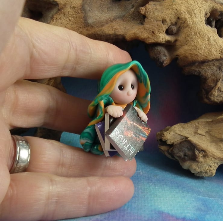 This is a 'one of a kind' creation having been entirely handmade without the use of moulds here at my studio on the Sussex Coast. Modelled with artist blend polymers, blushed before sealing with lacquer, Libby has sparkling black onyx eyes and three fixed books. Libby the Library Gnome is just one and a half inches tall.
