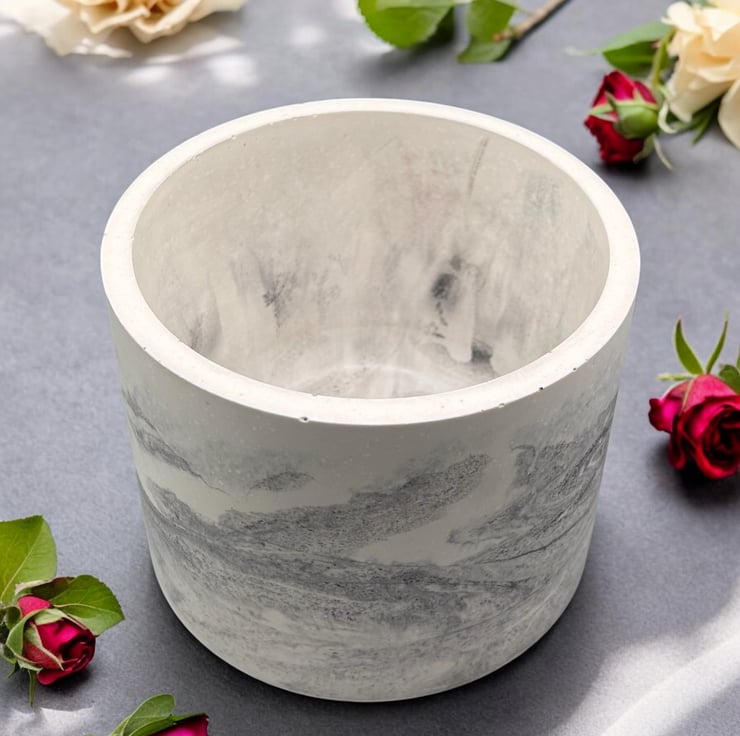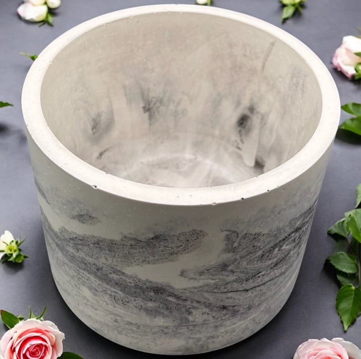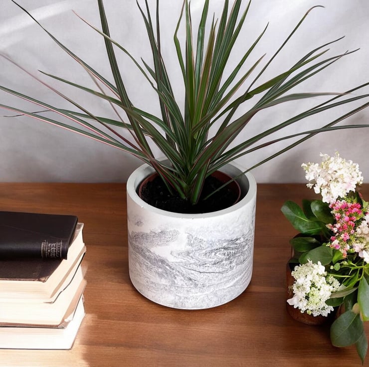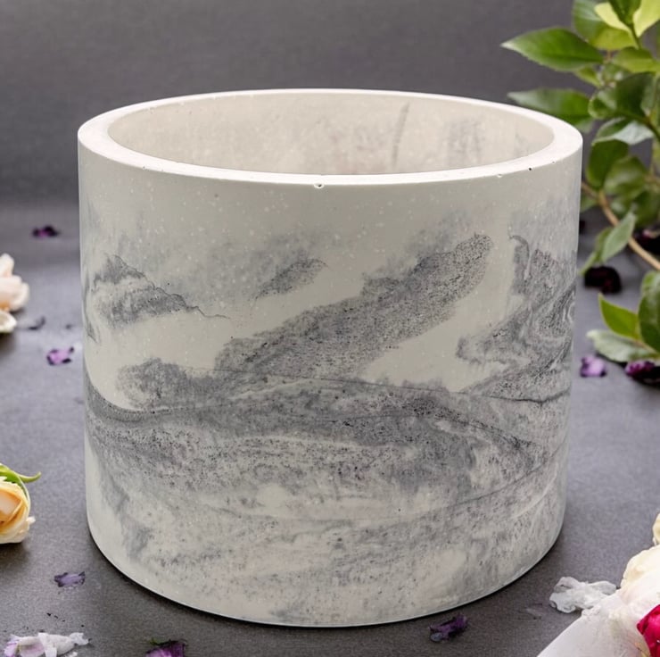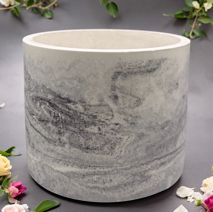 Large Round Plant Pot  - Marbled Planter Made from Premium Alpha Plaster
