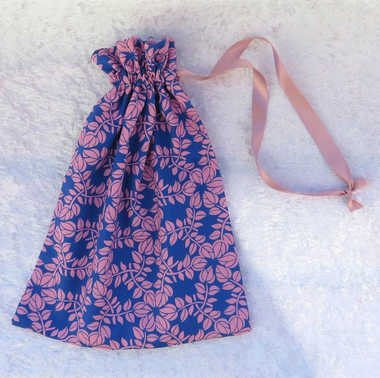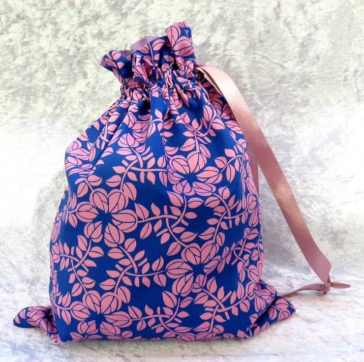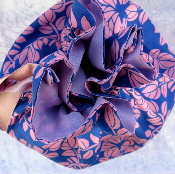 A lined drawstring bag, made from an organic Liberty Tana Lawn.