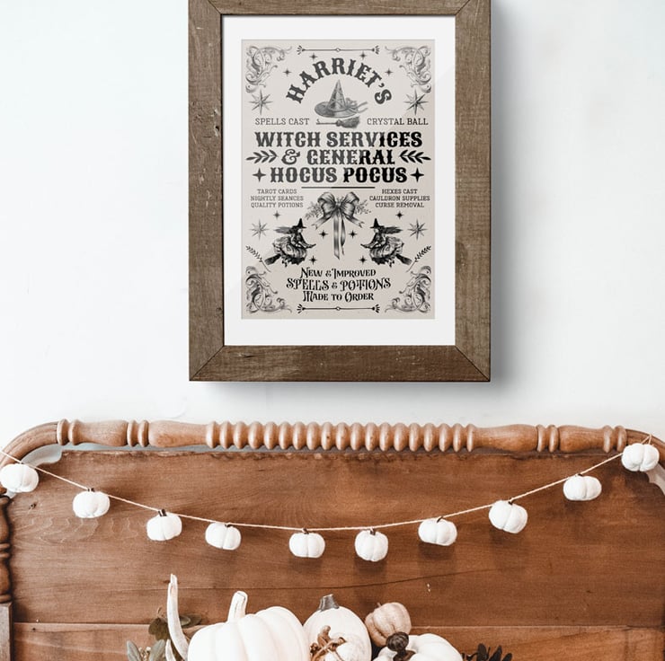 A truly bewitching piece that will add a touch of gothic or Victorian-style mystical whimsy to any room - the witch print is perfect for Halloween of course, but will look great displayed all year round too for that touch of hocus pocus...
