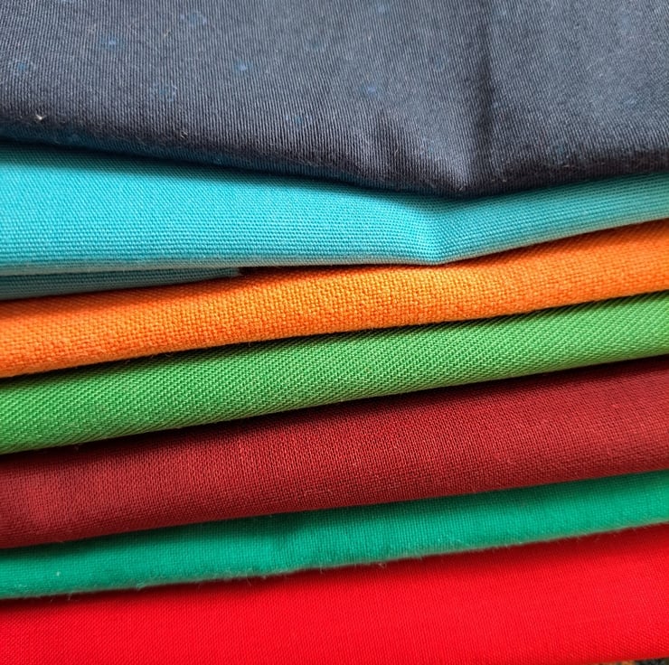 A seven-strong fabric bundle of bold primary (and secondary) colours. It's the plains that make the patterns zing, of course - although plains put together look great too. These are all rescues and remnants and come in a variety of weights, from polycotton sheeting to cotton canvas.