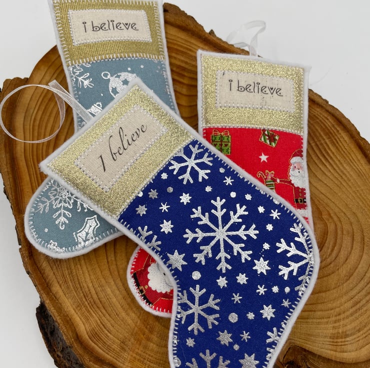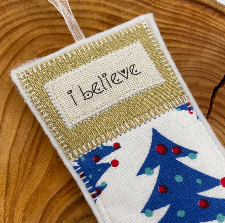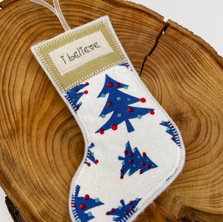 This sweet little stocking ornament, complete with an 'I Believe' tag, brings a touch of homespun magic to your Christmas tree. Handcrafted with care and brimming with nostalgic charm, it’s a simple yet heartfelt reminder of the joy and wonder the season holds. Perfect for adding a cozy, festive feel to your tree, this ornament is a timeless keepsake for those who still believe in the magic of Christmas.