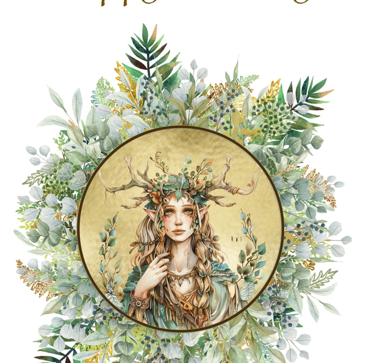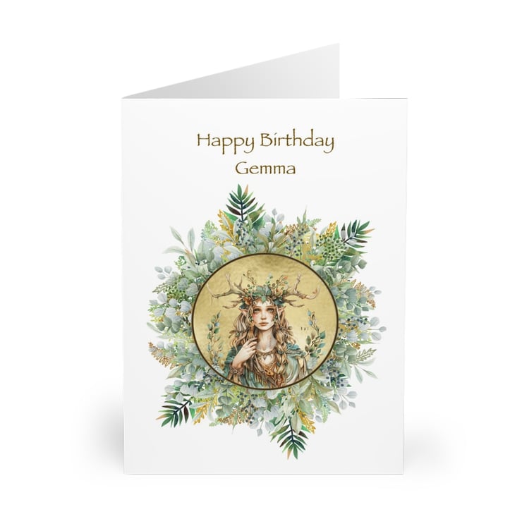Finally, an alternative greeting card for those that live a so-called ‘alternative’ lifestyle! This card features a horned Fae in a gold-filled circle surrounded with green, silver and gold foliage. This gorgeous card is particularly aimed at Pagans, Wiccans, Wise Women, and fans of Tolkien and other fantasy realms. The card is fully customisable and can be left blank or printed with a greeting of your choosing. Some examples are given in the images.