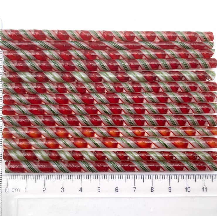 Christmas pack of twisty cane in red, white and green. 12-15 pieces of approx 12cm lengths in each pack.