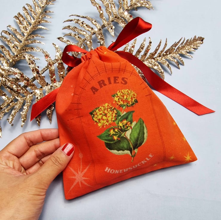 Honeysuckle, Aries Birth Flower Handmade and Reusable Pouch