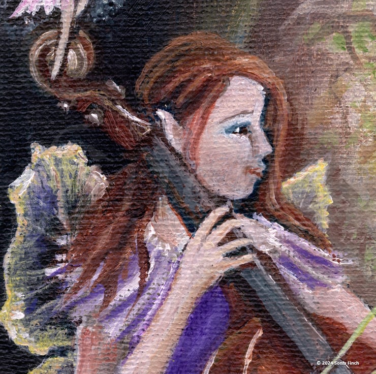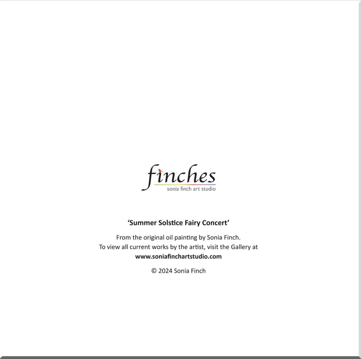 A beautiful blank greeting card created from the oil painting 'Summer Solstice Fairy Concert' by Sonia Finch. Perfect for any elemental or woodland wildlife lovers who love the Summer.