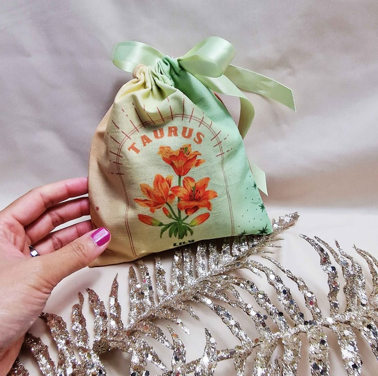 Each zodiac sign is celebrated through the associated birth flower and constellations, making each pouch unique to the individual.