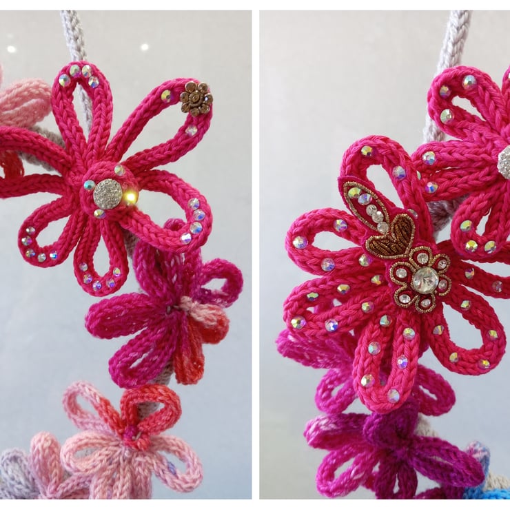Some of the flowers have had hot fix gems added and have diamonte buttons at their centre. The gems and buttons really catch the light and sparkle, especially in sunlight.