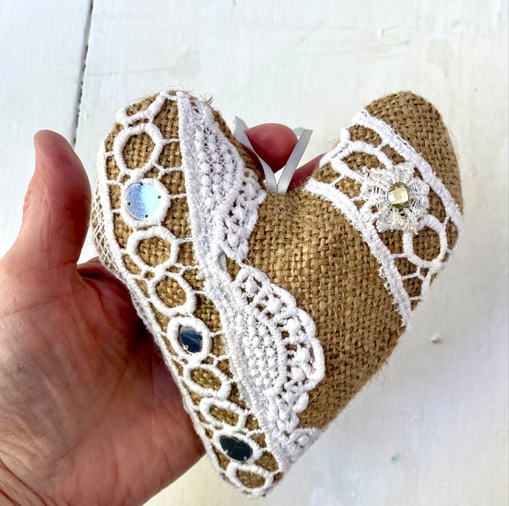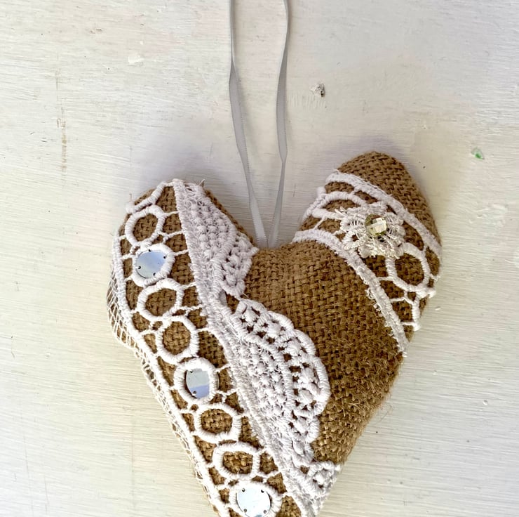 This is country cottage style love token has been made with vintage hessian and lace fabric.it makes an ideal gift to show your love, appreciation, friendship or gratitude.