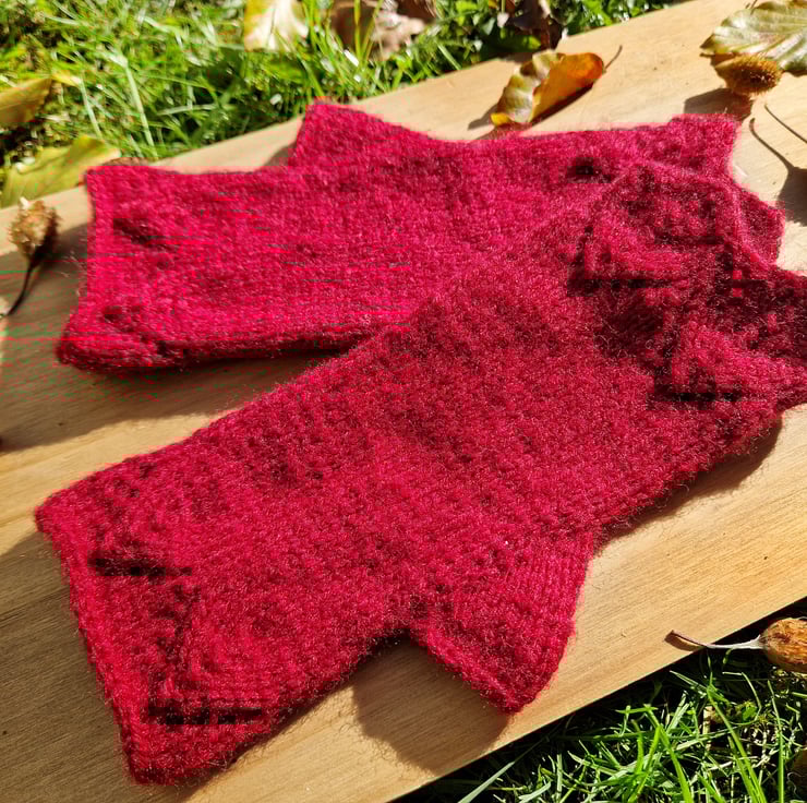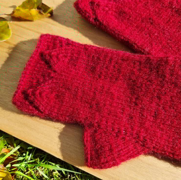 - Knitted in stretchy stockinette to fit most hand sizes