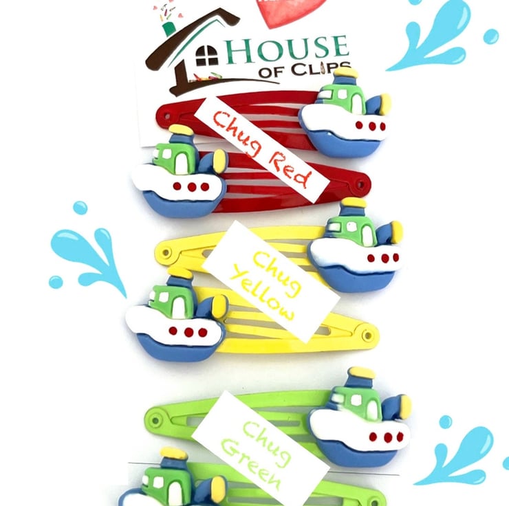 Chug Chug Hair Clips x2 - Boat Hair Clips - Boys and Girls Hair Snap Clips- Little Boat Barrettes - Gift For Boys - Gift For Nephew