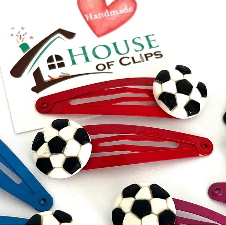 Footy Mad Hair Clips x2 - Football Non Slip Barrettes - Soccer Snap Clips - Great Gift For Girls - Hair Clips for Boys - Little Gift Idea