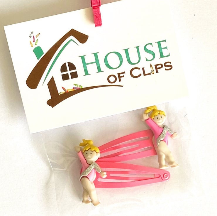For all those that are mad about gym these pink non-slip hair clips are simply fabulous. The little gymnast measures 3.5 cm tall and wears an electric pink leotard with silver sparkle detail.