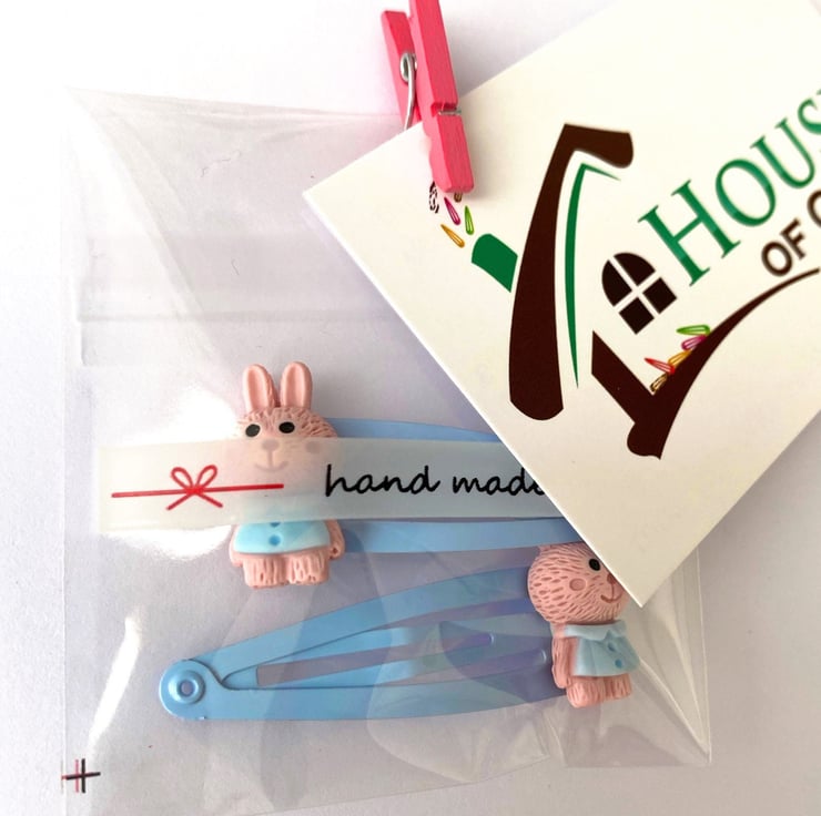 These cute bunny hair clips are set on pale blue hair clips, however if you d like a different colour bendie simply message me with your order.