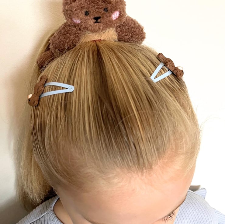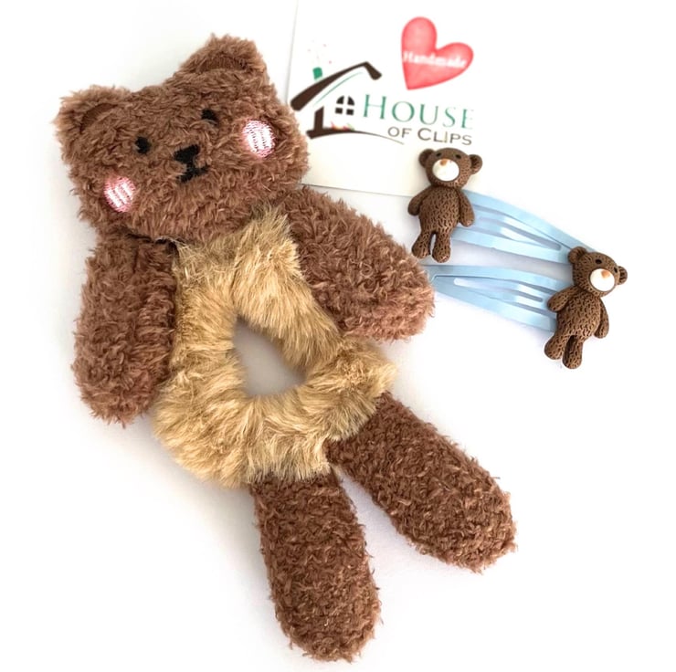 A wonderful hair set including a giant bear hair band and a set of super teddy bear hair clips.
