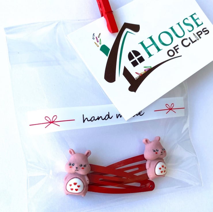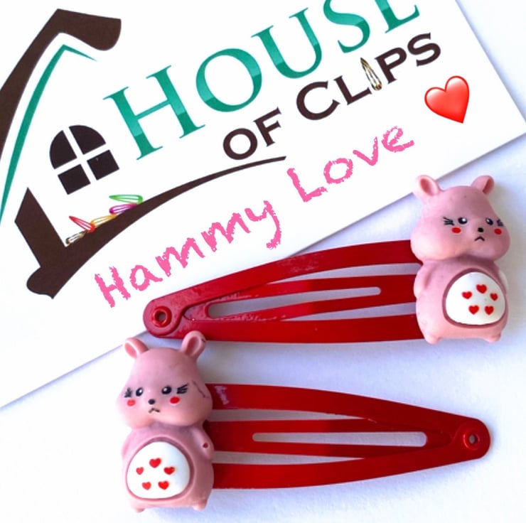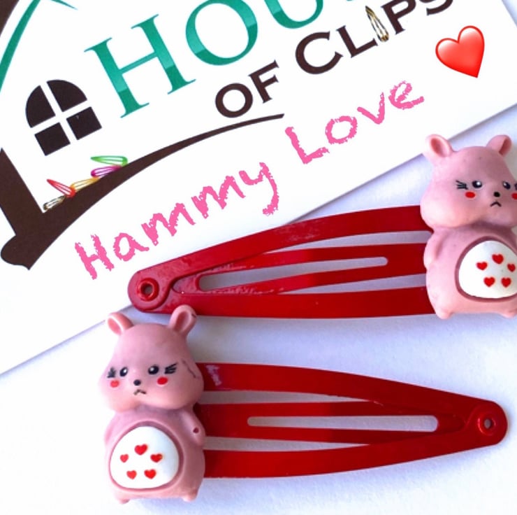 Cute hamster hair clips. Hammy Hamster is pink with red hearts on his tummy!