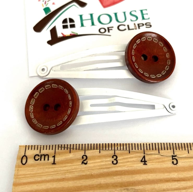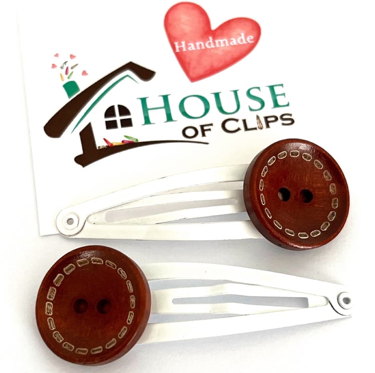 These clips are handmade and totally unique , made with a brown, vintage-style button and a white metal snap clip.