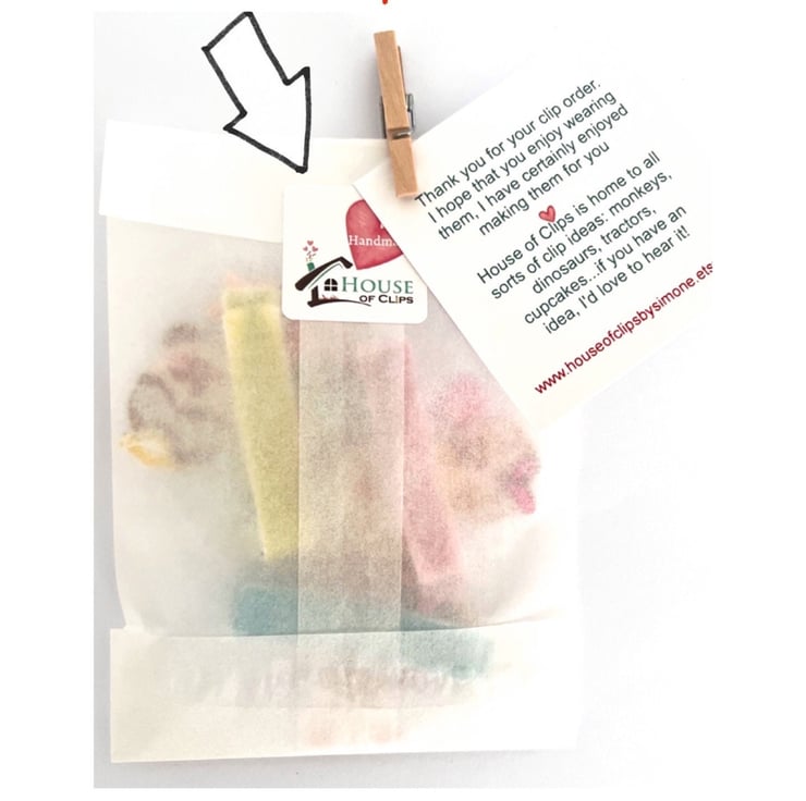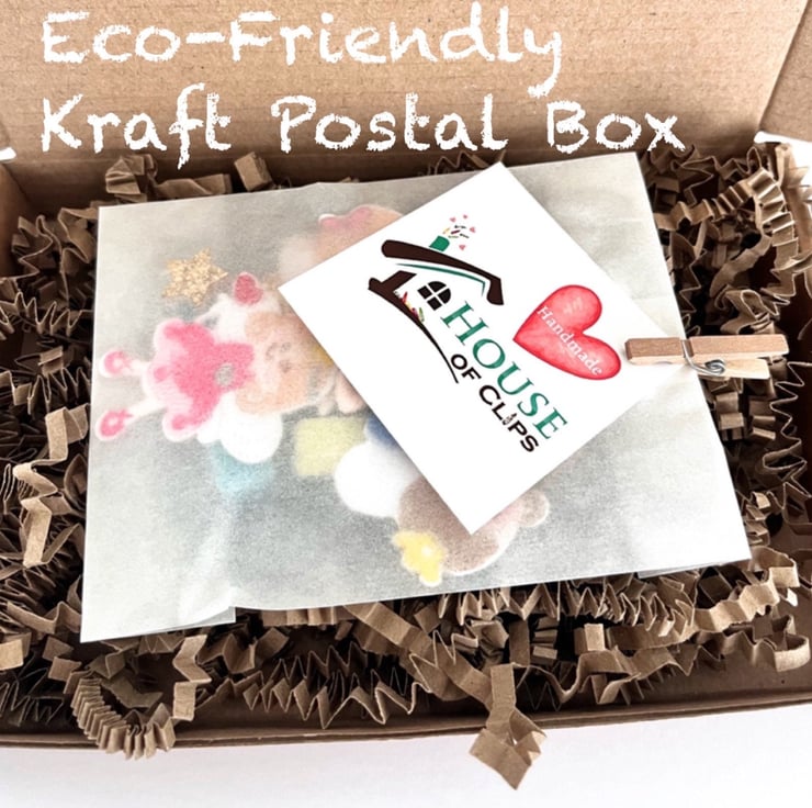 The fairy snap clips measure 5cm in length and arrive beautifully packaged. The fairy hair slides are carefully placed into a eco-friendly glassine envelope and sealed with a House of Clips handmade sticker. A tiny thank you card is attached using a wooden peg and then nestled into lavender scented shredded Kraft paper; making this the perfect gift!