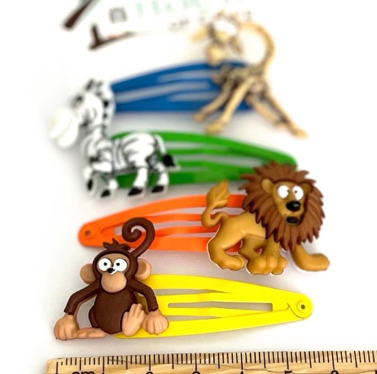Really Wild Clips x4 - Animal Hair Clips x4 - lion hair clips - zebra hair clips - monkey hair clips - zoo hair clips -giraffe hair clips -