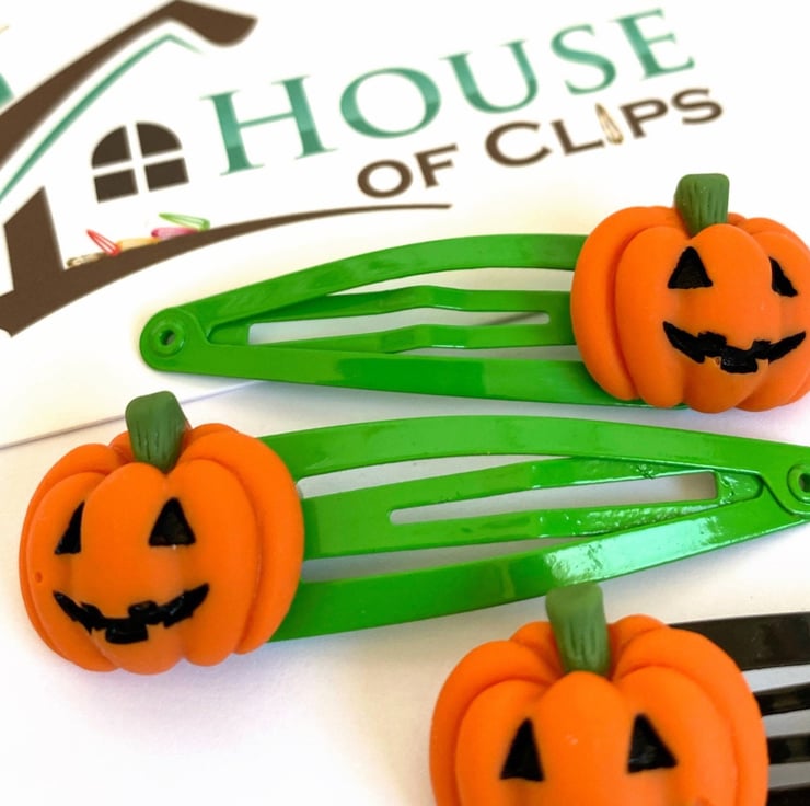 Scary Pumpkin Hair Clips x2