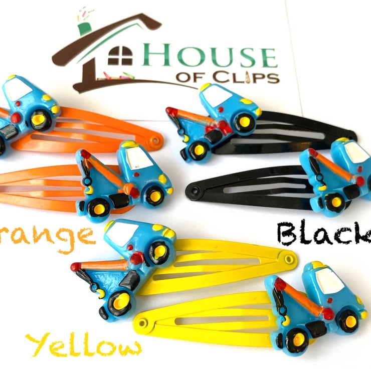 Tow Truck Clips x2 - Boys Hair Clips - Construction Truck Snap Clips - Hair Clips for Boys - Little Gift Idea - Boys Hair Clips