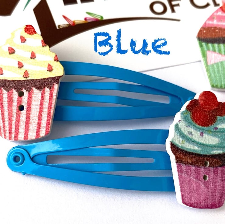 These Wooden Cupcake clips are set on either blue or red hair clips. However if you d like a different colour bendie simply look at the colour chart and message me with your order.