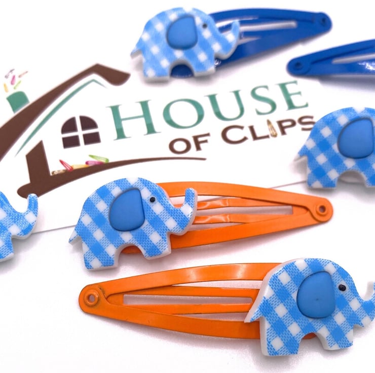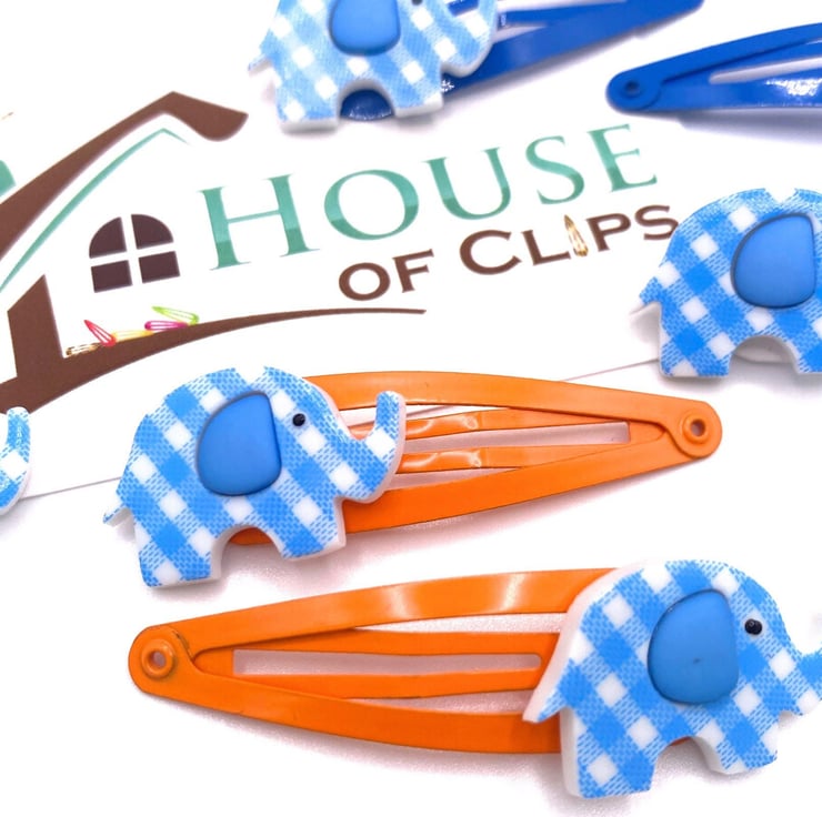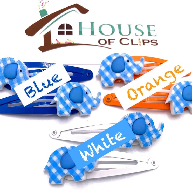 Pale blue baby elephants sit upon either blue, orange or white hair clips. However, these timeless, pretty Dumbo clips can be placed on any coloured snap clip simply message me with your order.