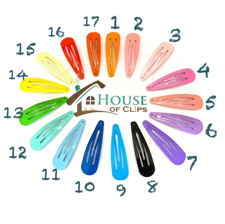 Plain coloured hair clips. You choose colour and message colour number with order x2 clips per order
