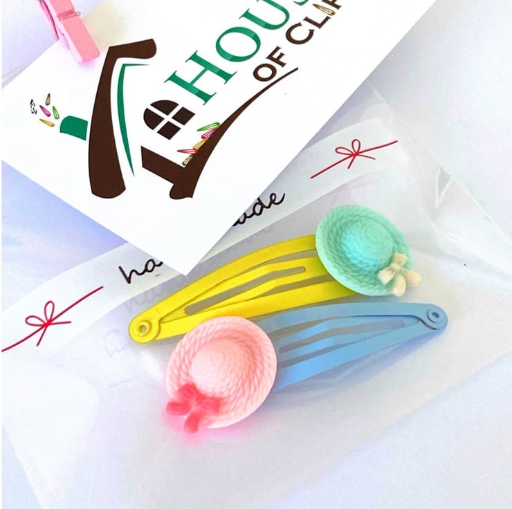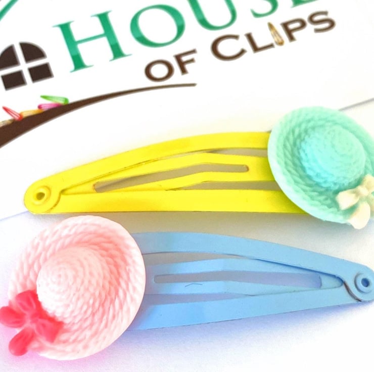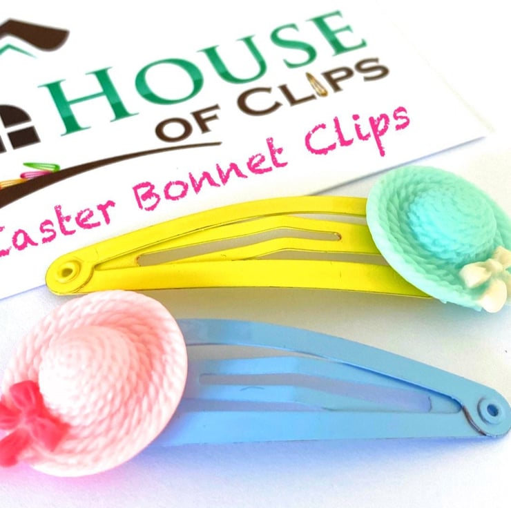 Easter Bonnet Hair Clips x2 with little bow detail