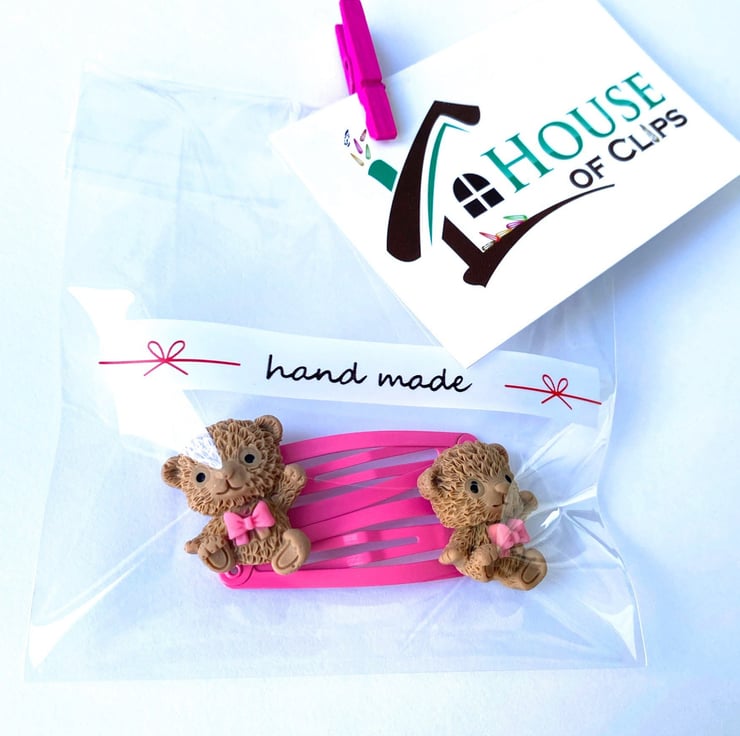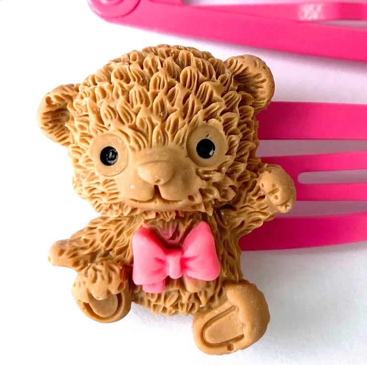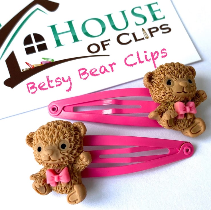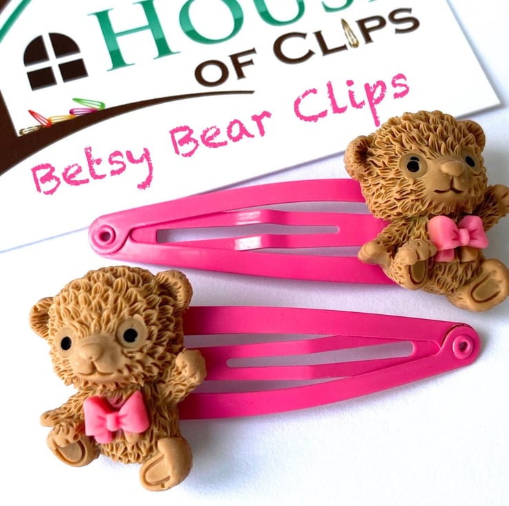 The Betsy Bear Hair Clips are super cute and incredibly detailed; it s just like wearing a little miniature toy in your hair! The bears have been placed on a pink hair clip but if you would like a different colour hair clip then simply message me with your order.