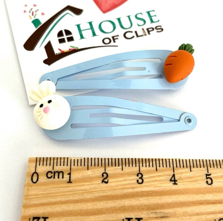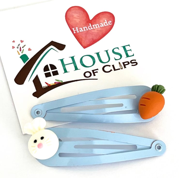 Small but beautifully detailed bunny head and carrot clips. They have been placed on pale blue clips, however if you would like them set on different coloured clips then simply look at the colour chart and message me with your order