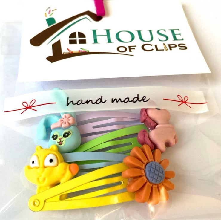 All of my clips arrive in a pretty cellophane bag, decorated with a peg and business card. Placed into a metallic protective envelope which I then like to decorate with fun stickers. Making your parcel something to smile about when it drops through your letter box!