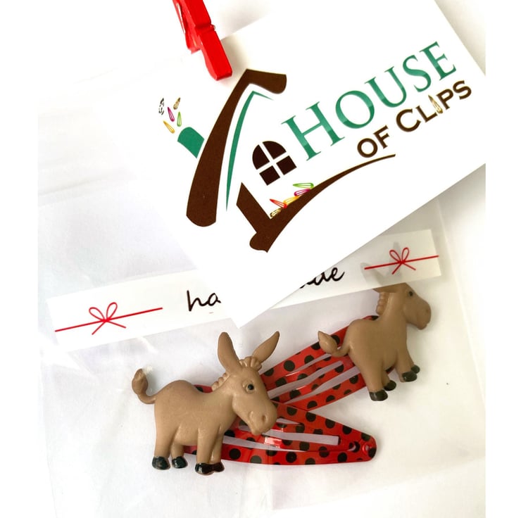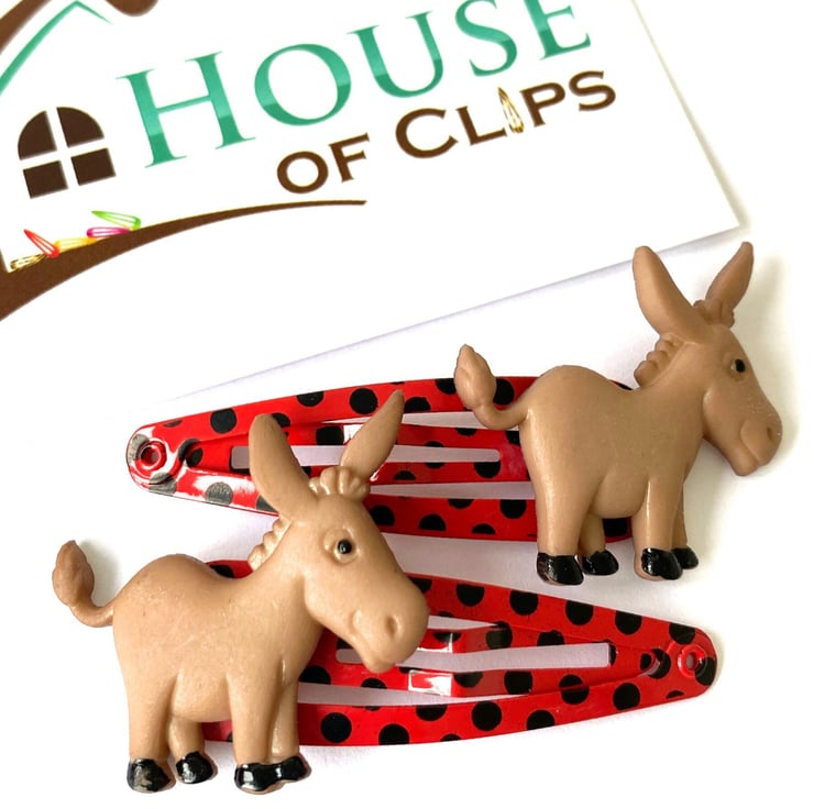 These farm hair clips placed on red sporty barrettes are really cheeky and lots of fun. Makes a great gift for under five pounds.