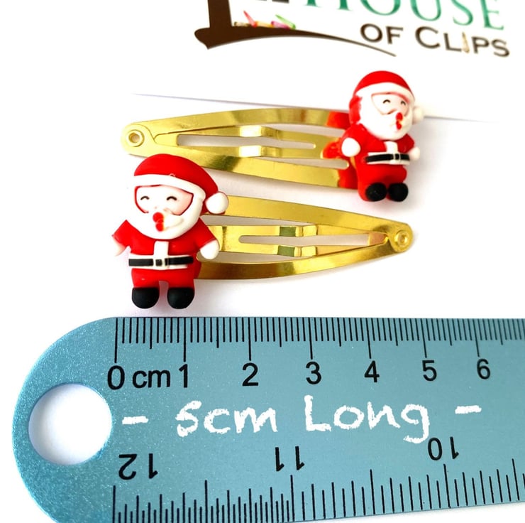 These extremely cute Father Christmas hair clips measure 5cm in length. They make a great stocking filler or little Xmas gift for niece, daughter, granddaughter and not forgetting the boys too!