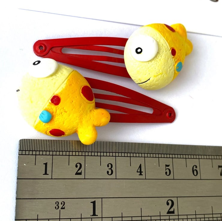 These fish non-slip hair clips look simply fantastic! Bright and colourful either on a turquoise or red hair clip.