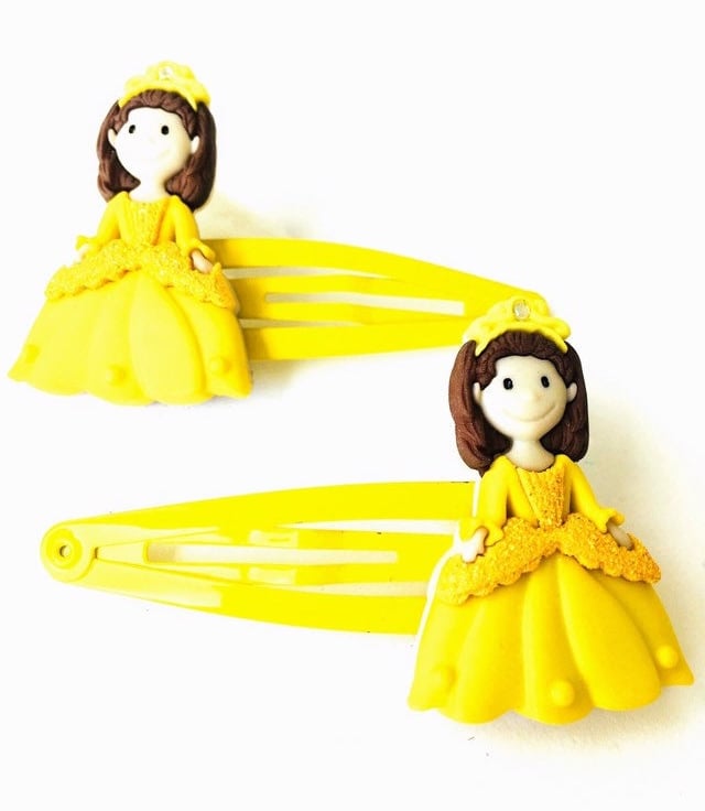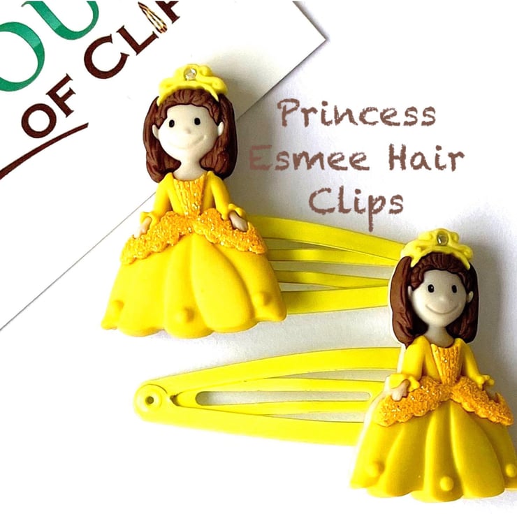 These clips measure 5cm in length. Princess Esmee is very detailed and come on a yellow clip, however as these are made to order, if you would like a different colour clip then simply send a message with your order.