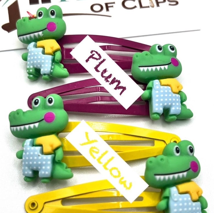 These super cute alligator hair clips measure 5cm in length and there is a choice of two different colours; plum and yellow.