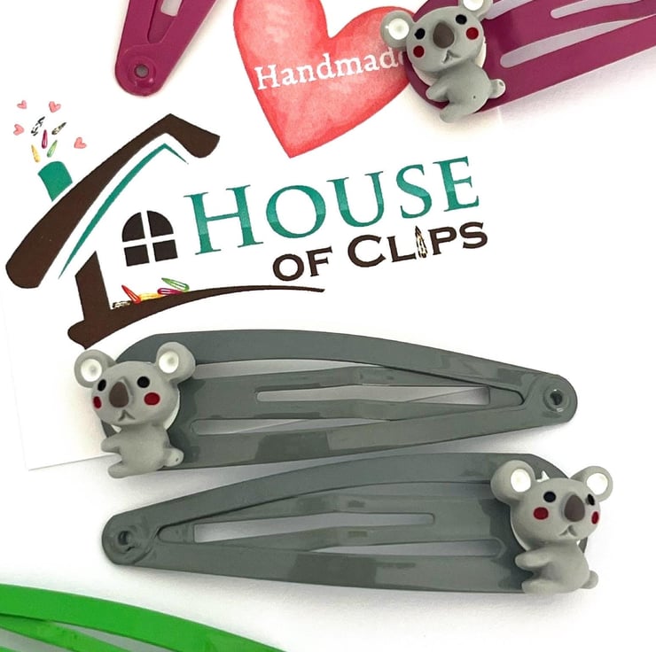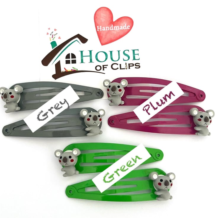 You can t get cuter than Kevin the Koala hair clips. Choose from; Grey, Green or Plum hair clips. Or if you d like a different colour hair clip then simply message me with your order.