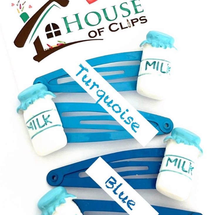 These milk carton clips are currently set on blue or turquoise clips, however if you would like a different coloured snap clip then simply look at the colour chart and message me with your order.