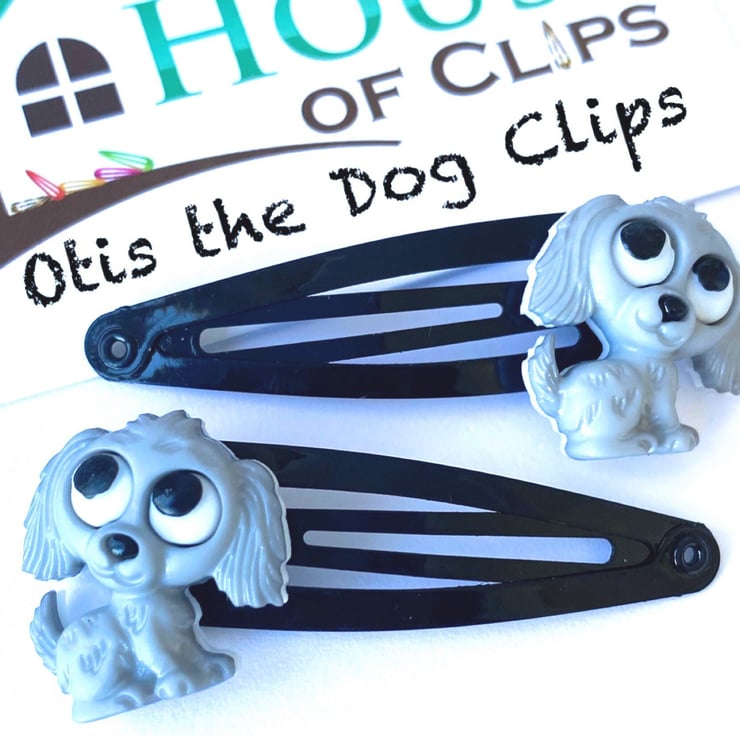 Otis the Dog Hair Clips x2 set on a black hair clip.