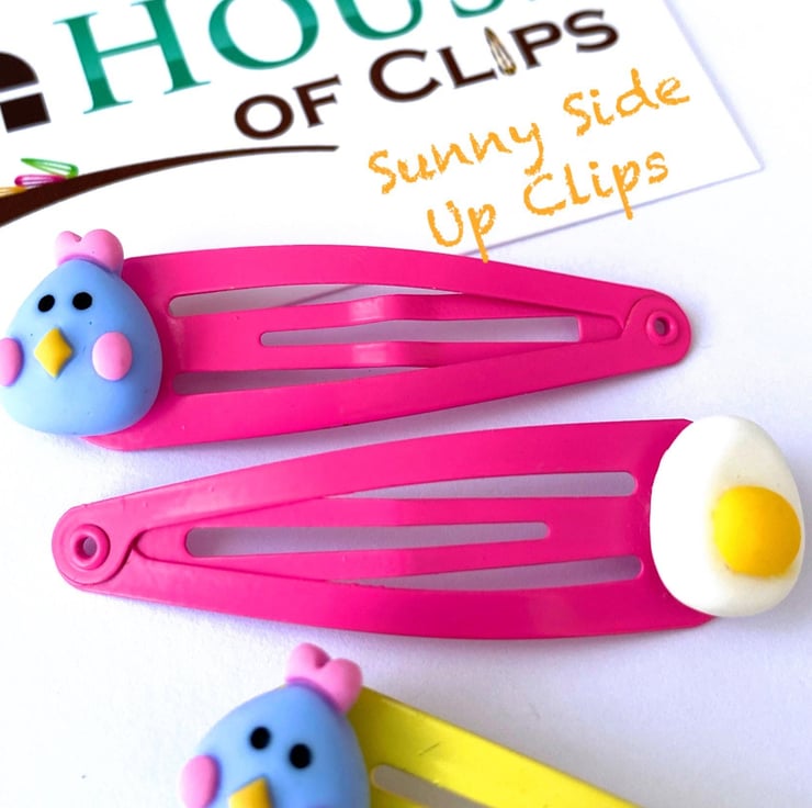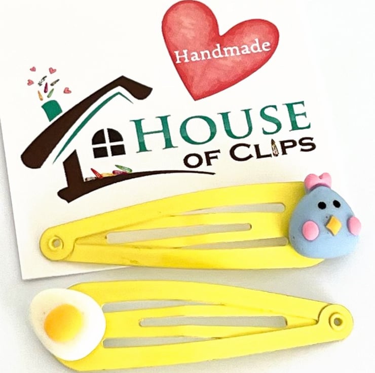 These chick and egg hair clips are so much fun. Two clips per purchase; one being a cute chick and the other a cracked egg!